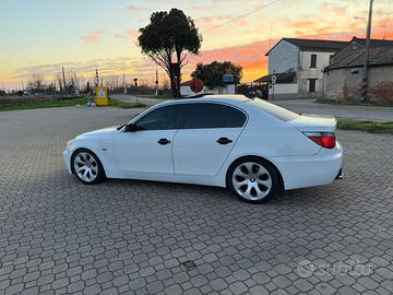 Vendesi BMW e60 530d pacchetto M-sport bianco perla . tettuccio apribile interno in pelle . Navigatore satelitare cambio automatico . Trazione posteriore. 280cv scarico diretto 4 uscite style M5