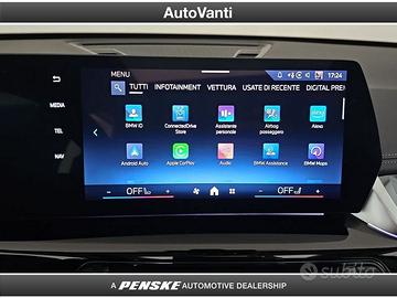 DEK:[10266858] Codice interno: HB864 Esterni: BMW Individual Storm Bay metallic Interni: Veganza perforated | Black Equipaggiamento del veicolo: 01EE Cerchi Lt/Aly da 19" a V stile 867 Bicolore 0230 Equipaggiamento supplementare specifico per l'UE 02PA Bulloni di bloccaggio delle ruote 02VB Monitor della pressione degli pneumatici 02VD Kit di riparazione pneumatici Plus 0302 Sistema di allarme 0322 Sistema di accesso al comfort 03AT Stasi del tetto in alluminio satinato 03MB Linea esterna in alluminio satinato 0402 Tetto in vetro panoramico 0413 Rete separatoria del vano bagagli 0420 Vetrature protettive solare 0428 Triangolo di avvertimento 0430 Pacchetto specchietti interni ed esterni 0431 Specchietto retrovisore interno con funzione automatica anti-abbagliamento 0455 Sedile attivo per conducente e passeggero anteriore 0478 Accessorio seggiolino i-Size per passeggeri anteriori 0494 Riscaldamento dei sedili per conducente e passeggero anteriore 04AT Finiture interne nere lucide 04NW Cruscotto di lusso 04T2 Cavo di ricarica rapida Professional (modalità 3) per la ricarica pubblica 04U6 Professionista della ricarica AC 0552 Fari a LED adattivi 05AC Assistente abbaglianti 05AS Assistente alla guida 05AT Assistenza alla guida Plus 05AV Guardia attiva 0654 Accordatore DAB 06AE Teleservizi 06AF Chiamata d'emergenza legale 06NX Archiviazione per la ricarica wireless 06PA eSIM personale 07EV Pacchetto di equipaggiamento 07HW xLine 07PP Pacchetto viaggio 0855 Versione linguistica: italiano 0884 Italiano / documentazione a bordo 08R3 Contenuti aggiuntivi del COC 08TF Sicurezza attiva dei pedoni 08WQ Controllo G 09T5 Contenuti aggiuntivi specifici X In caso di permuta, indica: marca, modello, colore, anno di