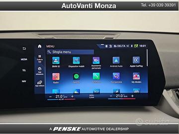 DEK:[10104981] Codice Interno: GR587 5 MOTIVI PER SCEGLIERE BMW PREMIUM SELECTION * 01 24 mesi Garanzia BMW Premium Selection * 02 Controllo del veicolo a 360° * 03 Esenzione da manutenzione per 6 mesi o 10.000 km* * 04 24 mesi di assistenza stradale* * 05 Certificazione del chilometraggio Equipaggiamento veicolo: 01EA Cerchio LL BMW razza a stella 865 STD 02VB Indicazione pressione pneumatici 02VF Telaio M adattativo 03DE Senza voci di design specifiche 03MC Barre tetto M, Shadow Line 0420 Cristalli oscurati 0451 Sedile attivo per guidatore 0478 Fissaggio seggiolino per bambini 04GN Listelli per interni arg. quarzo op. 04T2 LADEKABEL PROFESSIONAL (MODE 3) 04T3 Flexible Fast Charger (Mode 2) 04U9 Protezione pedoni acustica 04V1 BMW ICONICSOUNDS ELECTRIC 0548 Tachimetro chilometrico 05AV Active Guard 05DM Sistema di assistenza al parcheggio 0654 Sintonizzatore DAB (idoneità DAB+) 06AE Teleservices 06AF Chiamata di emergenza obbligatoria 06AK Connected Drive Services 06C4 Connected Package Professional In caso di permuta, indica: marca, modello, colore, anno di immatricolazione, chilometri, cambio e stato della vettura (meglio se con foto allegate). Con queste informazioni potremo risponderti più velocemente. Ti invitiamo a verificare la disponibilità e le caratteristiche dello specifico veicolo. AutoVanti SRL, declina ogni responsabilità per eventuali involontarie incongruenze rispetto alla descrizione presente nell'annuncio. VISITA IL NOSTRO SITO: www.penskecars.it/autovanti