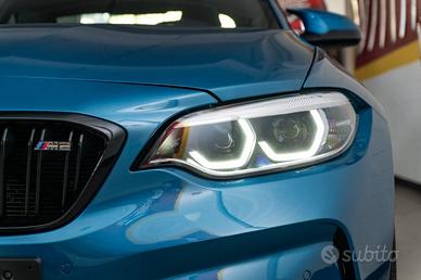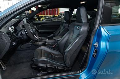 Autovettura in splendide condizioni, ufficiale italiana, tenuta in maniera maniacale color “Long Beach Blue” Met. cod. “C16” motorizzazione S55 3.000cc 6 cilindri 411cv, trazione posteriore cambio automatico doppia frizione DKG a 7 rapporti con paddles al volante cronologia tagliandi di manutenzione Bollo e super bollo pagati fino a 03/2027 AUTO IN PRONTA CONSEGNA PREZZO REALE NESSUN VINCOLO FINANZIARIO · sedili a guscio BMW M SPORT con logo “M2” retroilluminato, rivestimento in pelle traforata · Kit per interni M Performance con dettagli in carbonio ed alcantara · blade anteriore, splitter e spoiler posteriori in carbonio · impianto frenante maggiorato a 6 pompanti anteriori, 4 pompanti posteriori · cerchi in lega da 19 pollici diamantati mod. “Y Spoke” con pneumatici differenziati ant. 245/35 post 265/35, · volante sportivo 3 razze PRO M con inserti in carbonio, misto pelle ad alcantara con mirino blu · fari anteriori “BMW Adaptive LED”, luci diurne LED, sensore luce e pioggia, fari direzionali adattivi, abbaglianti automatici · Keyless system”: sistema di apertura, chiusura ed avviamento “chiavi in tasca” · sensori di parcheggio anteriori e posteriori assistiti con retrocamera a colori · 3 modalità di guida, Comfort, Sport, Sport+ per la personalizzazione dei parametri dell’auto · autoradio BMW Connected Pro con schermo touch screen, navigatore satellitare, lettore CD, Bluetooth, 2 USB, MMI di comando nella plancia centrale touch per inserimento caratteri, sistema di chiamata di emergenza · Harman Kardon Surround Sound System · climatizzatore automatico bi-zona, Cruise Control, Start&Stop · battitacco con logo M2 Competition, pedaliera sportiva in acciaio, 4 terminali di scarico posteriori · specchietti esterni regolabili e richiudibili elettricamente, vetri privacy · sistema di ricarica smartphone Wireless, supporto lombare a regolazione elettrica · 2° treno completo cerchi da 19” e pneumatici Possibilità di FINANZIAMENTO a tas