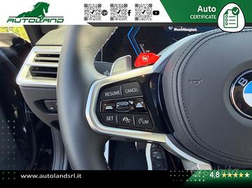 Vettura ufficiale BMW, da ordinare con consegna in 30 giorni, Autoland opera nel settore auto da oltre 50 anni, contattaci per maggiori informazioni sul veicolo o per preventivi personalizzati di Leasing e permute. Pacchetti di equipaggiamento- Pacchetto Comfort - Pacchetto estetico: M Shadow Line lucida - Pacchetto vani portaoggetti - Pacchetto specchi: pacchetto specchi interno ed esterno Sistemi di assistenza alla guida- Head-Up Display (HUD) - Assistente abbaglianti - BMW Park Assistant con PDC anteriore e posteriore - Telecamera posteriore - Accensione automatica dei fari - Cruise control attivo con funzione Stop & Go - Sistema di comando vocale - Avviso cambio corsia - Avviso uscita dalla corsia - Assistente alla frenata - Pacchetto assistenza alla guida: Driving Assistant, assistente retromarcia, prevenzione collisione posteriore - Active Guard con avviso di collisione - Informazione limite di velocità Luci e visibilità- Fari LED adattivi - Luci adattive in curva - Luci di svolta - Luci diurne a LED - Sensore pioggia - Specchi interno ed esterni auto-oscuranti - Vetri oscurati / vetri privacy - Regolazione dinamica della profondità dei fari - Illuminazione ambientale multicolore - Sensore luce Audio e comunicazione- Sistema multimediale - BMW Live Cockpit Professional: display widescreen - Radio BMW Professional - Display multifunzione - Ricezione radio digitale DAB+ - Sistema iDrive - Impianto audio HiFi - Porta USB, streaming audio Bluetooth - Sistema informativo e di servizi - Predisposizione telefono Bluetooth - Android Auto e Apple CarPlay - Ricarica wireless per smartphone - Hotspot Wi-Fi con eSIM personale Comfort- BMW Live Cockpit Professional: BMW Curved Display - Climatizzatore automatico bi-zona - Sedili conducente e passeggero regolabili in altezza - Sedili riscaldati conducente e passeggero - Sedili sportivi per conducente e passeggero - Bracciolo conducente e passeggero - Servosterzo Servot