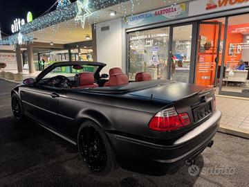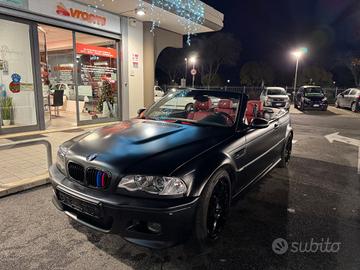 Proponiamo unica e intramontabile BMW M3 cabriolet coupé E46. 343 cavalli di pura potenza, sei cilindri in linea aspirati, il mix perfetto di comfort e sportività. Come si nota dalle foto l’auto ha un corredo in carbonio UNICO al mondo, volante carbonio e alcantara, estrattore, freno a mano, inserti, e molto altro. Sono stati spesi per realizzare questo allestimento più di 20.000 EURO!!! Monta già lo scarico sportivo, ma è stato conservato anche il suo originale. Auto iconica, unica con questo allestimento in tutta Europa, completa di qualsiasi optional possibile ed immaginabile, assolutamente full! L’auto non è wrappata, è realmente nero opaco, colorazione rarissima e disponibile solo per il mercato statunitense. Importata dall’America e pronta per essere immatricolata in Italia direttamente al fortunato che la acquisterà. già iscritta ASI e quindi già usufruire di tutte le agevolazioni sul bollo, assicurazioni eccetera. Auto già targata pronta all’uso. Auto da collezione, il cui prezzo sarà destinata a salire sempre di più. Tetto con hard top, nero opaco come l’auto, sedili riscaldabili full pelle rosso Cartier, Cruscotto interamente rivestito in pelle, tutti i dettagli su misura fatti a mano, schermo aggiornato con navigatore, CarPlay, eccetera. L’auto è in condizioni impeccabile, Immacolata sia fuori che dentro, i chilometri parlano da soli. Monta di serie il differenziale autobloccante, mai fatto uso pista o drift o burnout da raduno. Pronto all’uso, senza spenderci neanche un euro sopra, assolutamente cambio manuale! Niente a che vedere con l’SMG. Chiamare per qualsiasi informazione. Disponibile per qualsiasi prova.