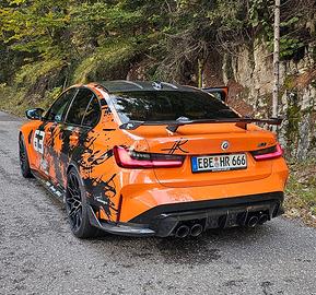 BMW M3 Competition M X Drive, con 20.300km, colore intividuale Arancione fuori come dentro,configurazione unica,sedili in Carbonio, Pacchetto M Carbonio esterno come interno tutto in carbonio, Pachetto M Performance, tetto in carbonio, Aspirazione Eventuri, il prezzo e con IVA deducibile. macchina molto piu leggera in confronte di altri M3 (G80), freni carbocheramici, macchina tenuta come nuova. Affare!!!