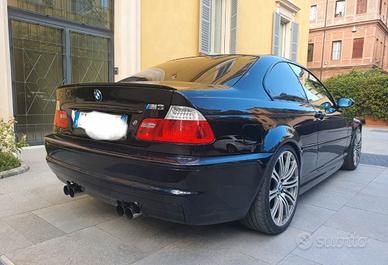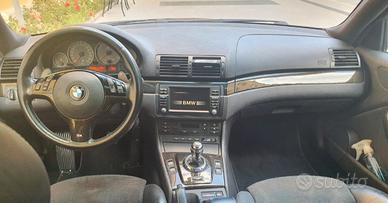 Bmw M3 E46 SMG, anno 2002, ASi con CRS, 185000km, tagliandata e gommata, nessun lavoro da fare, numerose fatture Bmw presenti, book service completo. Finale supersprint, freni anteriori maggiorati con pinze grosse e dischi flottanti, assetto ribassato, vetri oscurati Bmw, interno in carbonio Bmw, caricatore CD, Harman Kardom, tessuto/pelle sui sedili.