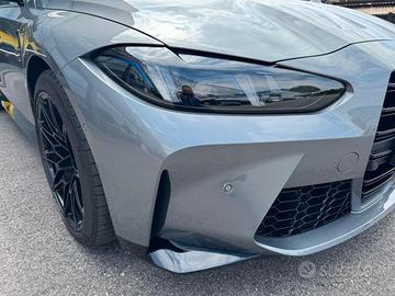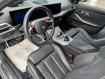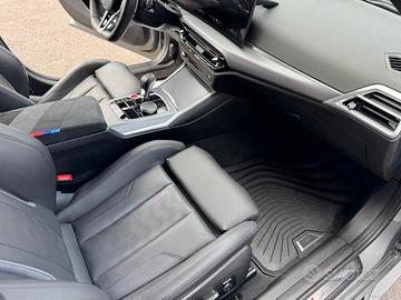 Tasche portaoggetti dietro i sedili anteriori, Vano portaoggetti, lato passeggero e guidatore, nelle portiere con portabevande (1l) e centrale anteriore, Ambient Light - Illuminazione interna diffusa, Luci interne, Luci interne, Regolazione elettrica sedili anteriori, Riscaldamento dei sedili anteriori, Sedili sportivi M Sport, Volante sportivo M in pelle a 3 razze con comandi multifunzione e tasi M1/M2, Regolazione del piantone sterzo in altezza e profondità, Bracciolo centrale per sedili anteriori con vano portaoggetti, Sedili per 5 passeggeri, Controller iDrive nella consolle centrale con tasti per selezione diretta funzioni, Listelli battitacco illuminati con badge M3, M4, Tappetini in velluto M con logo, Sistema di carico passante con schienale del sedile posteriore abbattibile 40:20:40, Supporto lombare, Climatizzatore automatico con controllo a 3 zone, Batteria agli Ioni di Litio con morsetto di sicurezza, BMW Connected Drive services, BMW Teleservices, Cornering Brake Control, Guida uso e manutenzione integrata e accessibile via Control Display, Kit attrezzi, Leva selettrice del cambio specifica M, Motore BMW Twin Power Turbo 6 cilindri benzina e High Precision Injection, Pedali M con cover in Alluminio, Personal eSIM, Profilo impostazioni personali dedicato per chiave, Protezione laterale contro urti integrata, Sensore livello e qualità olio motore, Sistema di monitoraggio per manutenzione, Triangolo di sosta d'emergenza, Filtro Antiparticolato, Accensione senza inserimento chiave, Kit prontosoccorso, Kit Riparazione Pneumatici, Calandra in nero lucido a doppio rene senza cornice con listelli doppi M e badge modello, Copertura motore con badge M, Diffusore posteriore in Nero Lucido, Elementi finiture galvanici, Modanatura interna Aluminium Rhombicle Anthracite, Shadowline BMW Individual esterna lucida, BMW live cockpit professional, 360° camera, Airbag posteriore, Airbag testa, Chiusura centralizzata telecomandata,