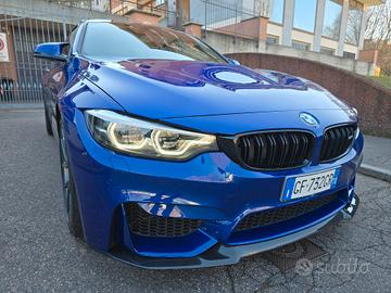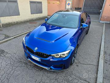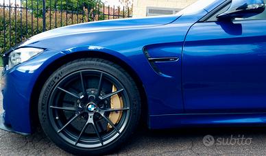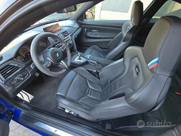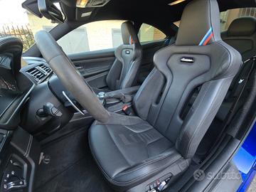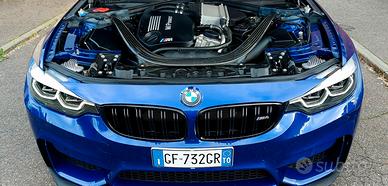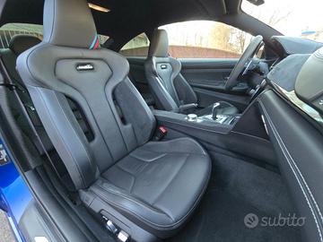 BMW M4 CS, prodotta in tiratura limitata a 3.000 unità per tutto il mondo. Motore potenziato, peso inferiore grazie alla fibra di carbonio, la "Club Sport" è riconoscibile per le appendici aerodinamiche in carbonio: splitter anteriore, profilo posteriore e diffusore che integra i quattro terminali di scarico. Anche cofano motore e tetto sono realizzati nello stesso materiale, contribuendo così a mantenere il peso entro i 1.500 kg. L'assetto della CS è stato modificato rispetto alle altre M4 e prevede sistema adattivo M con tre modalità di guida e tarature dedicate, il differenziale attivo M e l'M Dynamic Mode (MDM) con settaggi specifici. I nuovi cerchi di lega fucinati in tinta Orbit Grey sono particolarmente leggeri (9 kg all'anteriore, 10 al posteriore) con misure differenziate: 19" anteriore con pneumatici 265/35 e 20" posteriore con pneumatici 285/30. Gomme semi-slick omologato Michelin Sport Cup 2. Il propulsore sei cilindri 3.0 Twinpower Turbo è stato aggiornato e raggiunge una potenza massima di 460 CV e 600 Nm, con limitatore posto a quota 7.600 giri. Lo 0/100 km/h viene raggiunto in 3,9 secondi, mentre la velocità massima è autolimitata a 290 km/h. Impianto di scarico sportivo con valvole attive e cambio automatico doppia frizione M DKG sette marce. Pelle e Alcantara per gli interni. Gli interni sono caratterizzati da rivestimenti di pelle e Alcantara, con particolari alleggeriti e semplificati per i pannelli porta. Sono state adottate anche nuove cinghie al posto delle maniglie interne e i sedili sportivi M. Immatricolata nel 07/2018, 55.000 km, unico proprietario, vettura molto bella e pari veramente al nuovo! Regolarmente tagliandata, gomme semi-nuove, tagliandata da poco, nessun intervento da fare. Impianto frenante carbonceramica M con pinze oro, Cerchi in lega in ergal, Sensori di parcheggio anteriori/posteriori, telecamera, Sedili sportivi a guscio in pelle/alcantara elettrici + memory pack, Volante sportivo in alcantara con comandi multifunzion