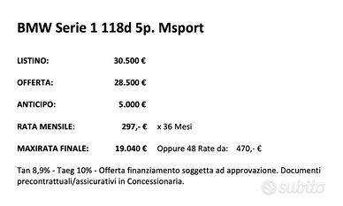 Splendida BMW ''Premium Selection'', allestimento Msport , Uniproprietaria, pari al nuovo, con 44.000 chilometri percorsi, garantiti da libretto service e fatture officina BMW
