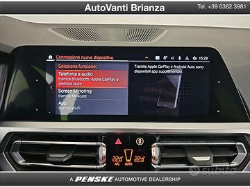 DEK:[10845958] CODICE INTERNO: GD217 5MOTIVI PER SCEGLIERE BMW PREMIUM SELECTION · 01 24 mesi Garanzia BMW Premium Selection · 02 Controllo del veicolo a 360° · 03 Esenzione da manutenzione per 6 mesi o 10.000 km* · 04 24 mesi di assistenza stradale* · 05 Certificazione del chilometraggio Verniciatura esterna: Mineral Grey Rivestimento interni: Alcantara/Sensatec combination Black/contrast stitching Blue (BK) Optional veicolo: 01PL Cerchi 19" M 02TB Trasmissione Steptronic Sport 02VB Monitor della pressione degli pneumatici 02VL Sterzo sportivo 0302 Sistema di allarme 03AT Stasi del tetto in alluminio satinato 03KA Vetratura acustica 0420 Vetrature protettive solare 0431 Specchietto retrovisore interno con funzione automatica anti-abbagliamento 0481 Sedili sportivi per conducente e passeggero anteriore 0488 Supporto lombare per conducente e passeggero anteriore 04HA Luce ambientale 0534 Aria condizionata automatica 0544 Cruise control con funzione frenante 05A1 Fendinebbia a LED 05AC Assistente abbaglianti 05AQ Active Guard Plus 05DC Poggiatesta posteriori, pieghevoli 05DM Assistente al parcheggio 0676 Sistema di altoparlanti HiFi 06AK Servizi ConnectedDrive 06C4 Connected Package Professional 06U3 BMW Live Cockpit Professional 06UH Informazioni sul traffico 0704 Sospensioni M Sport 0710 Volante in pelle M 0715 Pacchetto M Aerodynamics 07LF Model M Sport 08TF Sicurezza attiva dei pedoni In caso di permuta, indica: marca, modello, colore, anno di immatricolazione, chilometri, cambio, stato della