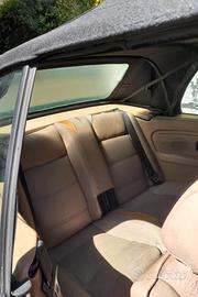 BMW 320 i cabrio, anno 1989, carrozzeria nera (colore originale) in discrete condizioni con capote nera (come nuova) ed interni in pelle color cammello (da ristrutturare). Selleria originale sedili anteriori in dotazione, per ristrutturazione. Motore pressoché nuovo, sostituito nel 2007 ed utilizzato fino al 2012. In atto veicolo marciante da mettere a punto. Unico proprietario. Non iscritta ASI. Consegna a carico dell'acquirente.
