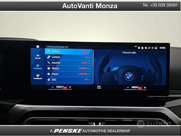 DEK:[10423985] Codice Interno: GS354 5 MOTIVI PER SCEGLIERE BMW PREMIUM SELECTION • 01 24 mesi Garanzia BMW Premium Selection • 02 Controllo del veicolo a 360° • 03 Esenzione da manutenzione per 6 mesi o 10.000 km* • 04 24 mesi di assistenza stradale* • 05 Certificazione del chilometraggio Equipaggiamento veicolo: 01MB M DRIVE PROFESSIONAL 01U0 BMW cerchio in l.l.826M JB 02T4 M differenziale sportivo 02VB Indicazione pressione pneumatici 02VF Telaio M adattativo 0302 Impianto antifurto 0322 Accesso comfort 0383 Tetto e gusci retrov. esterni neri 03MC Barre tetto M, Shadow Line 03MF Fari Shadow Line M 0420 Cristalli oscurati 0430 Specchietto retr. int./est. antiabbagl. 0431 Retrovisore int. autoanabbaglianti 0453 Sedili anteriori climatizzati 0459 Regolazione elettrica sedili con memory 0488 Supporto lombare guid. e pass. 0493 Pacchetto portaoggetti 0494 Riscaldamento sedile guid./pass. 04AT Modanature interno lucide nero 04NE Riscaldatore Blow-By 0534 Climatizzazione automatica 0548 Tachimetro chilometrico 05AC Assistente abbaglianti 05AU Driving Assistant Professional 05AV Active Guard 05AZ BMW Laserlicht 05DA Disattivazione airbag passeggero 05DC Poggiateste posteriore pieghevole 05DN Sistema di assistenza al parcheggio Plus 0654 Sintonizzatore DAB (idoneità DAB+) 06AE Teleservices 06AF Chiamata di emergenza obbligatoria 06AK Connected Drive Services 06C4 Connected Package Professional 06NX Storage tray wireless charging 06U3 BMW Live cockpit Professional 06VB Comando Infotainment 0712 Sedile sport M 0760 Lucido shadow line 0775 Cielo antracite 07M9 M Shadow Line con contenuto ampliato 07ME M Drivers Package In caso di permuta, indica: marca, modello, colore, anno di immatricolazione, chilometri, cambio e stato della vettura (meglio se con foto allegate). Con queste informazioni potremo risponderti più velocemente. Ti invitiamo a verificare la disponibilità e le caratteristiche dello specifico