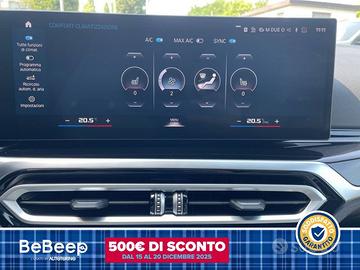 DEK:[10433878] Vuoi maggiori informazioni su questa vettura? Chiamaci ora: Consulenti sempre disponibili per te, anche in pausa pranzo! Scopri di più sul nostro sito www.autotorino.it BeBeep è il nuovo marchio dell'usato di Autotorino, garanzia di qualità e sicurezza. Ogni vettura è selezionata con cura e sottoposta a rigidi controlli per offrirti sempre la migliore esperienza d'acquisto. Scegli BeBeep per un viaggio senza preoccupazioni. ID VEICOLO AUTOTORINO: U1057582 *Prezzo da considerarsi escluso di passaggio di proprietà e contributo ambientale PFU. Se presente una permuta si intendono altresì esclusi i costi di gestione dell'usato. (contributo PFU pari a 8,47€, costi di gestione dell'usato pari a 250€). Il calcolo del passaggio di proprietà varia in base a potenza del veicolo e residenza dell'intestatario del veicolo, consulta i dettagli sul sito www.aci.it La vettura è completa nella dotazione optional di Tasche portaoggetti posteriori, Vani portaoggetti portiere e centrale, Ambient Light, Luci interne anteriori e posteriori, Illuminazione vano piedi e bagagliaio, Sedili anteriori elettrici, Sedili anteriori riscaldabili, Sedili sportivi M, Volante sportivo M in pelle, Volante regolabile, Bracciolo anteriore con vano, 5 posti, Console centrale con iDrive, Listelli battitacco illuminati M, Tappetini M in velluto, Sedili posteriori abbattibili 40:20:40, Supporto lombare, Climatizzatore automatico 3 zone, Batteria litio, Connected Drive, Teleservices, Cornering Brake Control, Cambio automatico 8 marce M Steptronic, Start & Stop, Keyless start, Kit pronto soccorso, Calandra nera M, Copertura motore M, Diffusore posteriore nero, Modanature interne Black Gloss, Minigonne e paraurti neri, Shadowline lucido esterno, BMW Live Cockpit Plus, Telecomando luci e chiusura, Ganci e anelli bagagliaio, Antifurto con allarme, Immobilizer elettronico, Chiusura centralizzata, Bulloni antifurto, Assetto sportivo adattivo M, Impianto HiFi