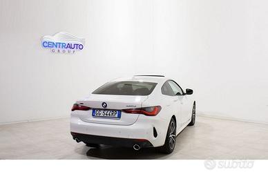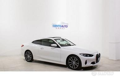 DEK:[10611668] BMW 420d COUPE' xDrive MH48V SPORT Autom. - 09/2021 Km. 88.600 Costo vettura € 32.900,00 interamente finanziabile con anticipo ZERO Passaggio di Proprietà escluso. Possibilità di Test Drive in sede. Per poter visionare la vettura ci trovate presso Centrauto Group s.p. 362 km 16,500 (Via Lecce, zona industriale Galatina) i nostri orari di apertura sono i seguenti : lunedì'- venerdì 8.30-13.00 / 16.00-20.00 sabato 9.00-12.00 / 16.00-19.00 N.B. La descrizione è puramente indicativa decliniamo ogni responsabilità per eventuali involontarie incongruenze nella descrizione degli equipaggiamenti tecnici ed accessori indicati che quindi non rappresentano un impegno contrattuale. EQUIPAGGIAMENTI OPTIONAL : Cerchi in lega leggera da 18", styling a V n° 780 bicolore - Tetto panoramico scorrevole/inclinabile ad azionamento elettrico - Vernice Alpine White - Vetri posteriori laterali e lunotto oscurati EQUIPAGGIAMENTI DI SERIE : 2 poggiatesta sedili ant. , con reg. in altezza, 2 poggiatesta sedili post. - ABS - Airbag anteriore conducente intelligente, airbag anteriore passeggero intelligente con interrutore di disattivazione - Airbag laterale anteriore - Airbag laterali a tendina ant./post. - Alzacristalli elettrici anteriori , numero ad impulso 2 - Assistenza alla frenata di emergenza - Bracciolo anteriore - Bracciolo posteriore - Chiusura centralizzata tramite cellulare , incl. cristalli elettrici - Cinture sicurezza ant. conducente e passeggero con pretensionatori - Cinture sicurezza post. conducente e passeggero - Climatizzatore a controllo automatico - Comandi audio al volante - Comando luci con sensore di oscurità automatica - Computer con velocità media, consumo medio, consumo istantaneo e autonomia - Conness.dispositivi est.intrattenimento include porta USB anteriore, 2 e 0 - Connessione bluetooth con musica in streaming - Controllo elettronico trazione - Differenziale autobloccante