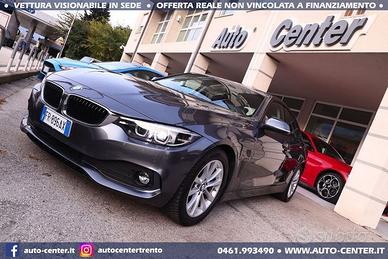 DIAMO PRECEDENZA ALLE RICHIESTE COMPLETE DI RECAPITO TELEFONICOSiamo organizzati per trattativa ed acquisto A DISTANZA, con anche spedizione via camion a domicilio. Ci potete contattare compilando l'apposito modulo, via mail, whatsapp, oppure telefonicamente:-- SALONE VENDITE -- SIMONE -- LUCA --SUL NOSTRO SITO AUTO-CENTER.IT POTETE VISUALIZZARE + DI 60 FOTO PER OGNI AUTODESCRIZIONEUsato NAZIONALE ritirato da ns cliente in OTTIME condizioni con chilometraggio certificato.Cronologia Service BMW:01/2020 con 6.781 km01/2021 con 14.636 km12/2021 con 23.021 km01/2025 con 51.689 kmPOSSIBILITA' FINANZIAMENTO• Riferimento FR896• Prima immatricolazione 04/2018• Chilometraggio 62.937 KM CERTIFICATI• Garanzia 12 MESI• Passaggio / IPT non compreso nel prezzo• Valutiamo permute anche di valore superiore (se di nostro interesse)• NON ritiriamo Moto e Auto d’epoca; NON accettiamo offerte al ribasso• PRONTA CONSEGNA IN SEDE A TRENTO• Visionabile da Lunedì a Sabato (Sabato aperti dalle 9.00 alle 13.00)• È gradito l’APPUNTAMENTOBMW 418 D GRANCOUPE' AUT ADVANTAGE 2.0 5PORTE 150CV EURO6COLORE ESTERNOGrigio metallizzatoINTERNITessuto NeroALLESTIMENTO INCLUSO• 5 porte• 5 posti0205 Cambio automatico02L3 Cerchi in lega 17", style 395 a V, Reflex Silver02VB Indicazione pressione pneumatici0302 Impianto antifurto0423 Stuoia di inserimento velours0431 Retrovisore int. autoanabbaglianti0488 Supporto lombare guid. e pass.04AE Appoggiobraccia anteriore scorrevole0508 Park Distance Control (PDC) anteriore posteriore0534 Climatizzazione automatica bizona05A1 Fendinebbia a LED0606 Sistema di navigazione Business0654 Sintonizzatore DAB (idoneità DAB+)06AC Chiamata di emergenza intelligente06AK Connected Drive Services06AN Concierge Services06NH Disp. viva voce con interfaccia USB06WA Strum. comb. con dotazione ampliata07S9 Connected Drive Services Paket0855 Versione lingua italianaBDAT Tessuto