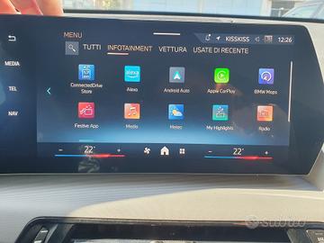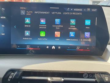 Il comfort a bordo è elevato grazie a climatizzatore automatico a 3 zone, sedile passeggero ribaltabile per maggiore flessibilità, luce d'ambiente, sedili Isofix per sicurezza dei più piccoli, accesso senza chiave, volante in pelle multifunzione e alzacristalli elettrici. Per la connettività e l'intrattenimento, questa BMW dispone di schermo multifunzione digitale, Apple CarPlay, Android Auto, hotspot Wi-Fi, Bluetooth, caricatore per smartphone a induzione e sistema di navigazione con touch screen.