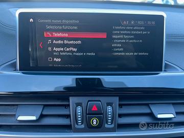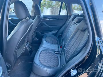BMW X1 18d S-DRIVE (trazione anteriore) allestimento X-LINE con cambio automatico 7 rapporti, navigatore cartografico professional, Bluetooth, radio cd mp3 con ingresso USB e AUX, CARPLAY, telecamera di retromarcia, climatizzatore elettronico tre zone, interni sportivi in pelle parziale di colore nero, volante sportivo in pelle multifunzione, cruise control, sensori parcheggio anteriori e posteriori con park assist (parcheggio automatico), specchi retrovisori regolabili e richiudibili elettronicamente, fari FULL LED, cerchi in lega diamantati bi-color da 18" con gomme invernali al 90%, sensore luce e pioggia, pacchetto cromature, FRONT ASSIST (sensore frenata), portellone elettrico, pacchetto luci esterne ed interne dinamiche (con cambio colore), pacchetto luci esterne..