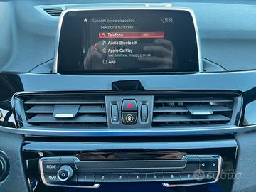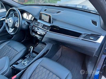 BMW X1 18d S-DRIVE (trazione anteriori) allestimento X-LINE con cambio automatico 7 rapporti, navigatore cartografico, Bluetooth, radio cd mp3 con ingresso USB e AUX, CARPLAY, climatizzatore elettronico tre zone, interni sportivi in pelle parziale di colore nero, sedili anteriori riscaldati, volante sportivo in pelle multifunzione con palette del cambio (cambio F1), cruise control, sensori parcheggio anteriori e posteriori, specchi retrovisori regolabili e richiudibili elettronicamente, fari FULL LED, cerchi in lega neri da 18" con gomme invernali al 90%, sensore luce e pioggia, pacchetto cromature, vetri privacy, portellone posteriore, FRONT ASSIST (sensore frenata), riconoscimento segnali stradali, pacchetto luci esterne ed interne dinamiche (con cambio colore)..