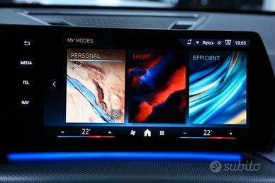 Allestimento Msport con cambio automatico e paddle sequenziali al volante, quattro ruote motrici, potenza massima con sistema ibrido 163 cv, cerchi in lega leggera da 18'' Style 838 M Double Spoke, sensori di parcheggio anteriori e posteriori (PDC), telecamera posteriore di parcheggio, vetri posteriori oscurati, pacchetto estetico esterno nero lucido shadow line black, mancorrenti nero lucido, fari full LED, specchietti retrovisori esterni ripiegabili elettricamente, portellone bagagliaio posteriore azionabile elettricamente, interni in Alcantara/Veganza Black con cuciture a contrasto Blue e sedili sportivi Msport, mod. interne in Alluminio Hexacube pale, bracciolo anteriore centrale, volante sportivo M in pelle a tre razze multifunzione, cruise control e limitatore di velocità, BMW Live Cockpit Plus con BMW Curved Display (quadro strumenti digitale - display touch centrale), Apple CarPlay e Android Auto wireless, bluetooth, navigatore, prese USB, BMW My Modes (PERSONAL - SPORT - EFFICIENT), start & stop, HDC (controllo velocità in discesa), sensore luci anabbaglianti e pioggia, luci LED d'ambiente personalizzabili, climatizzatore automatico bi-zona, auto hold, assistenza alla guida (mantenimento di corsia - avviso anticollisione - rilevatore segnali stradali - assist. attenzione alla guida), ISOFIX, monitoraggio pressione pneumatici, specchietto retrovisore interno auto-oscurante, pulsante chiamata d'emergenza, ecc.