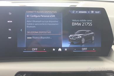 PREZZO ESCLUSO PASSAGGIO DI PROPRIETA' 12 MESI DI GARANZIA NESSUN OBBLIGO DI FINANZIAMENTO POSSIBILITA' DI ACQUISTO CON LEGGE 104/92 WWW.GSAMOBILE.NET Vano portaoggetti con cover fronte passeggero, Vano portaoggetti integrato nelle portiere, lato passeggero e guidatore, Vano portaoggetti nella consolle centrale con chiusura e portavivande, Luci interne, Luci interne, Pacchetto luci interne, Sedili anteriori del guidatore e del passeggero regolabili manualmente in altezza, Sedile posteriore suddiviso 40:20:40 con 5 posti, cinture a 3 punti di ancoraggio e attacchi ISOFIX, Volante in pelle sportivo a tre razze, Volante regolabile in altezza e profondità, Bracciolo anteriore con pannello di controllo integrato, Tappettini in velluto, Climatizzatore automatico bi-zona, Attacchi i-Seat per sedile passeggero anteriore, Attentiveness assistant, BMW Connected Drive services, BMW iDrive, BMW Teleservice, Cornering Brake Control, Maniglie delle portiere integrate nella carrozzeria, Spoiler Posteriore in nero lucido, Garanzia aggiuntiva BEST4, Tyre Repair Kit, Cornici dei finestrini in nero opaco, Griglia BMW con listelli neri in Black High Gloss e cornice cromata, Modanature interne Quarz Silver, Montante B in nero opaco, BMW Live Cockpit Plus, 2 chiavi-telecomando per chiusura centralizzata, apertura / chiusura finestrini e vano bagagli con chiave di emergenza integrata, Terminale di scarico nascosto, Alette parasole per guidatore e passeggero, Bulloni antifurto, Sospensioni posteriori Multi-Link, Speaker stereo con 6 altoparlanti, Comandi multifunzione al volante, Radio digitale terrestre DAB e DAB+ (digital audio broadcasting), Widescreen display, Cambio automatico DCT a 7 rapporti con doppia frizione, Cerchi in lega da 18" style 865 Star-spoke Refined silver con pneumatici 225/55 R18, Presa 12V e luce nel lato destro del vano bagagli, Driving Assistant Plus Preparation, Chrome Line esterna alluminio satinato BMW Individual,