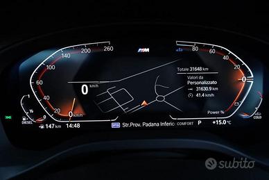 Kit aerodinamico M, Telaio sportivo M, M Pacchetto sport, BMW Live cockpit Plus, Frenata d'emergenza assistita con Protezione pedoni attiva, Guardia attiva, Serbatoio carburante più grande, Pacchetto connesso professionale, Barre tetto M, Shadow Line, Volante M in pelle multifunzionale, Sedili sportivi in pelle Sensatec traforata, Fari a led con abbaglianti automatici, Riconoscimento della segnaletica stradale, Park distance control con sensori di parcheggio a 360°, retrocamera con sistema di parcheggio automatico, Leve cambio al volante, Clima 3 zone, Android auto e Apple carplay, Controllo vocale, Assistente di retromarcia, Spoiler, ecc...
