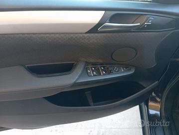 Abitacolo internoModanature interne in alluminio satinato Climatizzatore automatico bizona con microfiltro, bocchette di ventilazione posteriore, sensore antiappannamento, ricircolo automatico e design black-panel Battitacco anteriori con scritta 'BMW xLine' Modanature interne in Argento satinato opaco Elemento in alluminio satinato in prossimità della soglia d'accesso del vano bagagli Maniglie di appiglio (posteriori con gancio appendiabiti) Bracciolo centrale anteriore Piantone sterzo regolabile manualmente in altezza e profondità Volante sportivo in pelle Regolazione manuale dei sedili anteriori Illuminazione vano bagagli laterale (destra e sinistra) Pacchetto luci interne Volante sportivo a 3 razze con corona e pomello del cambio in pelle Schienale posteriore a 3 posti ripiegabile 40:20:40 con portabicchieri nel bracciolo centrale Portabicchieri (2) nella consolle centrale con copertura scorrevole EcoStart/Stop Automatico (in abbinamento sia al cambio manuale che all'automatico) Brake Energy Regeneration AltroTerminale di scarico in grigio chiaro satinato Terminale di scarico in acciaio cromato (singolo, ovale, a sinistra) Anelli di fissaggio (4) nel vano bagagli Elementi esterni dedicati con verniciatura in alluminio satinato Contorno finestrini laterali in alluminio satinato Predisposizione ISOFIX per ancoraggio seggiolini per bambini su sedili posteriori Sistema di trazione integrale intelligente xDrive, con ripartizione variabile della coppia e funzionalità estese del DSC Avviamento vettura senza chiave (sistema keyless start) Filtro Antiparticolato (per motorizzazioni diesel) Personal Profile (personalizzazione funzioni vettura memorizzate sulla singola chiave) Motore 4 cilindri diesel common rail con tecnologia BMW TwinPower Turbo e turbocompressore a geometria variabile Luci freno a a doppio stadio (esclusa terza luce stop) BMW Teleservices Chiave con inserto in Pearl Chrome BMW Mobility System (Kit riparazione pneumatici, n