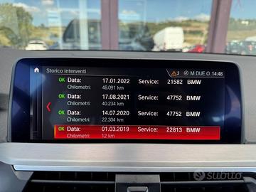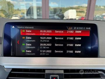 BMW X3 Xdrive20d XLine 190cv Auto Veicolo totalmente tagliandato BMW - Veicolo Italiano - Unico Proprietario - IVA Deducibile Immatricolazione: 28/02/2019 Chilometraggio: 95.143 km Carburante: Diesel Cambio: Automatico Equipaggiamenti di serie: - Sedili sportivi - Volante in pelle - Appoggiabraccia centrale - Appoggiabraccia posteriore cen - Filtro antiparticolato - Chiave con transponder - Trazione Integrale - Immobilizzatore Elettronico - Chiusura Centralizzata - Antifurto - DVD - Impianto audio - Navigatore - Computer Bordo - Autoradio digitale - Cerchi in Lega - Presa USB / AUX - Start e Stop - Specchietti Elettrici - Portellone posteriore elettrico - Fari LED - Fendinebbia - Luci diurne LED - Interni Pelle - ABS - Airbag - Airbag Laterale - Servosterzo - Controllo Trazione (TSC - ASR) - Sistema elettronico della stabilità - Cruise Control - Sistema di controllo pressione pneumatici - Frenata di emergenza assistita - Partenza assistita su pendenza - Isofix - Sistema di chiamata d'emergenza - Limitatore di velocità - Sensori di parcheggio posteriori - Sensori Pioggia Storico manutenzione: - 14/07/2020 a 22.304 km - 17/08/2021 a 40.234 km - 17/01/2022 a 48.091 km - 28/09/2022 a 57.786 km - 16/01/2024 a 75.279 km - 05/05/2025 a 91.861 km Visibile nel nostro punto vendita, acquista anche online sul nostro sito!
