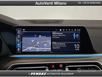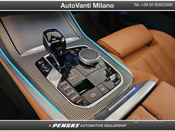 DEK:[10770404] Codice Interno: GJ782 5 MOTIVI PER SCEGLIERE BMW PREMIUM SELECTION • 01 24 mesi Garanzia BMW Premium Selection • 02 Controllo del veicolo a 360° • 03 Esenzione da manutenzione per 6 mesi o 10.000 km* • 04 24 mesi di assistenza stradale* • 05 Certificazione del chilometraggio Vernice : Carbon Black metallic Rivestimento interni : Leather 'Vernasca' design-perforated Cognac (BK) Equipaggiamento veicolo: 01CBContenuto di CO201DFNorma EU6 RDE II sulle emissioni di scarico01XNCerchi 21" M Lt/Aly Y-spoke 741 M Bicolour / MT, gomme runflat0230Equipaggiamento supplementare specifico per l'UE0258Gomme runflat02NHFreno sportivo M02PABulloni di bloccaggio delle ruote02TBTrasmissione Steptronic Sport02VBMonitor della pressione degli pneumatici02VHSterzo Attivo Integrato0302Sistema di allarme0322Sistema di accesso al comfort0337Pacchetto M Sport03DSChiave del display BMW03KAVetratura acustica03MCLinee Shadow Line, linee individuali del tetto individuali BMW0407Panorama tetto in vetro Sky Lounge0413Rete per scompartimenti bagagli0420Vetrature protettive solare0423Tappetini in velluto0441Pacchetto per fumatori0456Sedili comfort anteriori, regolabili elettricamente04AWQuadro strumenti in Sensatec04HARiscaldamento dei sedili sia davanti che dietro04HBPacchetto Comfort Heat frontale04 MESEFiniture interne Alluminio Tetragon04NBAria condizionata automatica con controllo a 4 zone04NERiscaldatore a soffiaggio04U9Protezione acustica per i pedoni0552Fari a LED adattivi05ACAssistente abbaglianti05ALProtezione attiva05AQActive Guard Plus05AUAssistente alla guida professionista05DNAssistenza Parcheggio Plus0610BMW Head-Up Display0654Accordatore DAB0676Sistema di altoparlanti HiFi06AETeleservizi06AFChiamata d'emergenza legale06AKServizi ConnectedDrive06C4Connected Package Professional06NSTelefonia migliorata con connettività estesa per smartphone06U8BMW Gesture Control0710Volante in pelle M0715Pacchetto M Aerodynamics0760BMW Singola Shadow