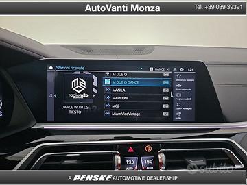 DEK:[10886182] Codice Interno: GX920 5 MOTIVI PER SCEGLIERE BMW PREMIUM SELECTION • 01 24 mesi Garanzia BMW Premium Selection • 02 Controllo del veicolo a 360° • 03 Esenzione da manutenzione per 6 mesi o 10.000 km* • 04 24 mesi di assistenza stradale* • 05 Certificazione del chilometraggio Equipaggiamento veicolo: 01PARuota lega leggera 22" doppia razza 742M 02NHM Freno Sport 02TBCambio automatico Sport 02VBIndicazione pressione pneumatici 02VCSet di riparazione pneumatici 02VHSterzo attivo Integral 02VRRegolazione del livello a due assi 0302Impianto antifurto 0322Accesso comfort 0337M Pacchetto sport 03KAVetri a isolam. acustico 03MCBarre tetto M, Shadow Line 03MFFari Shadow Line M 0402Tetto panoramico elettrico 0420Cristalli oscurati 0423Stuoia di inserimento velours 0459Regolazione elettrica sedili con memory 0481Sedile sportivo 0488Supporto lombare guid. e pass. 048YAssenza sostegno lombare passeggero ant. 04AWPlancia portastrumenti Sensatec 04FLTravel & Comfort Rail System 04HARiscaldamento sedile ant. e post. 04HBPacchetto comfort termico anteriore 04MLModanature interne nero lucido 04NBClimatizz.autom. con 4 zone di regolaz. 04NERiscaldatore Blow-By 04T8Pacchetto specchietti ampliato 04U9Protezione pedoni acustica 04URLuce abitacolo 0548Tachimetro chilometrico 05ACAssistente abbaglianti 05AQActive Guard Plus 05AUDriving Assistant Professional 05AZBMW Laserlicht 05DMSistema di assistenza al parcheggio 0654Modulo di ricezione DAB 06AETeleservices 06AFChiamata di