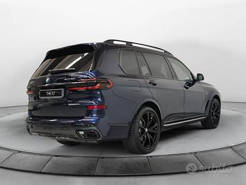 Scopri la nuova BMW X7 xDrive40i 48V MSport Pro, un SUV di lusso con spazio per 7 passeggeri e prestazioni eccezionali. Con un motore a 6 cilindri da 2998 cc e 381 CV, offre una guida potente e dinamica. Dotata di tecnologia avanzata come il BMW Live Cockpit Professional e una serie di pacchetti esclusivi, garantisce comfort e sicurezza. Tra gli optional, il Tetto panoramico in vetro Sky Lounge e il Sistema di altoparlanti HIFI Surround Harman/Kardon. Ideale per chi cerca un'esperienza di guida superiore e versatilità.