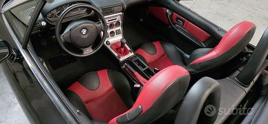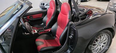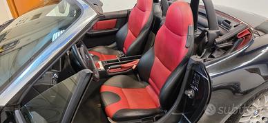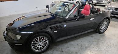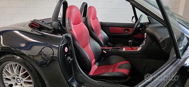 BMW Z3 1.8 "Sport Edition", Individual Colore Black-Sapphire Metallic, Interni Bicolore Pelle Traum-Rot (Nero/Rosso), Cerchi BBS 17" Scomponibili, Clima, Roll-Bar, Autobloccante, Assetto M, Capote Rossa C'è chi ama la Z3 e... chi mente! La sua grande storia iniziò nel 1995 e BMW, per chiuderne l'era, rilasciò negli ultimi mesi di produzione una versione speciale, la "Sport Edition", codice opzione S0719. Questa è uno di quei pochi esemplari, ulteriormente impreziosito dal programma BMW Individual di fabbrica, codice S0940, che ne fa un esemplare unico nella combinazione estetica, 100% originale e ben mantenuto nel tempo. La "Sport Edition" ha un equipaggiamento di serie che comprende: Differenziale autobloccante meccanico al 25% (S0209) Assetto M Sports Suspension (S0704), sospensioni ribassate Paraurti a bocca di squalo con indicatori di direzione bianchi Interni dedicati con sedili sportivi avvolgenti, Chrome Line Intérieur, volante M in pelle Cerchi in lega BMW LA da 17" con pneumatici a canale differenziato (misti anteriore/posteriore) Il pacchetto BMW Individual aggiunge ciò che rende questo esemplare davvero raro: capote Softtop Classic Red (rosso antico) originale, pelle bicolore "Chameleon / Traum-Rot" nero e rosso su sedili e pannelli, e Chrome Line Esterna con montanti parabrezza cromati, tutto documentato nel profilo opzioni ufficiale BMW sul numero di telaio. Dotazione molto completa: Aria Condizionata, Roll-Bar integrato, Dynamic Stability Control, sedili riscaldati, computer di bordo, sistema pulizia fari, fendinebbia, chiusura centralizzata con telecomando. Storia completa documentata. Si declina ogni responsabilità per eventuali involontarie incongruenze, che non rappresentano in alcun modo un impegno contrattuale.