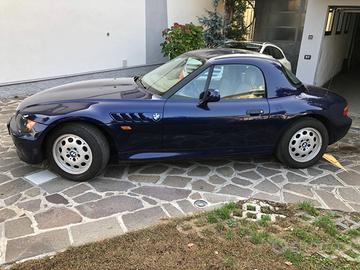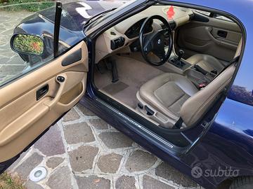 BMW Z3 140 Cv blu metallizzato. Interni, capote e sedili in pelle beige.