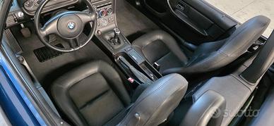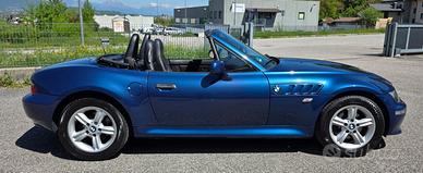 BMW Z3 2.2 Roadster 170Cv Topas-blue Metallizzato, Capote Nera, Interni in pelle Chamelon Questa Z3 Roadster è un ottimo conservato, è ricercato "freccia bianca", un fine serie, giugno 2002, squisitamente mantenuta da "Zetamaniaco". 100% originale, chilometraggio basso e condizioni da vetrina. Interni in pelle morbida e che profumano ancora di nuovo, capote originale in ottima forma e tutta prima vernice (tranne velatura sul cofano). Presente la sua dotazione originale, Autoradio BMW Business, Frangivento, Triple chiavi, Manualistica dell'epoca, card e stickers. La dotazione è completa: Climatizzatore, Sistema DSC (Stabilità e Trazione), sedili elettrici e riscaldati, Rollbar, Airbag laterali, Chrome line interna e Volante in Pelle. L'auto è nel registro di Tutela ACI, iscrivibile ASI con benefici fiscali e sconti su bollo e assicurazione, pronta per l'immatricolazione. Si declina ogni responsabilità per eventuali involontarie incongruenze che non rappresentano accordi contrattuali