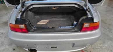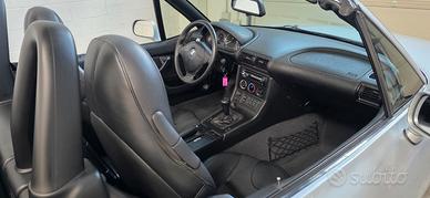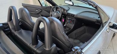 BMW Z3 Roadster 2.8 24v "Wide Body" Colore Artic Silver con Interni Pelle Nera, Roll Bar, Clima, Autobloccante, Capote elettrica. Questa Z3 Roadster, è un ottimo conservato, quasi tutta prima vernice, con basso chilometraggio, dotato del mitico 6 cilindri BMW e con un equipaggiamento molto completo. Bene mantenuta nel tempo, full service, si presenta in ordine sia dal lato tecnico che dal lato estetico. La dotazione comprende Interni M con sedili avvolgenti, Clima, Sedili Elettrici e Riscaldati, Capote Elettroidraulica, Controllo Stabilità e Trazione, Computer di Bordo, Impianto Stereo, Specchietti Elettrici, Chiusura Centralizzata e Triple chiavi. Per gli amanti della guida più pura è dotata del raro differenziale autobloccante meccanico, dei cerchi da 17" a canale differenziato e dell'assetto M Sport. Sono presenti Manuali BMW, Service Book, Report Carvertical e Documenti di revisione Auto di interesse storico, iscrivibile ASI, disponibile per qualsiasi prova e verifica, pronta per l'immatricolazione. Si declina ogni responsabilità per eventuali involontarie incongruenze, che non rappresentano in alcun modo un impegno contrattuale.