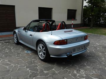 BMW Z3 1.9 16v Roadster 140cv, Auto Ufficiale AC Shnitzer, Immatricolazione 1988, Km 190mila, Colore Argento, Interno in pelle rossa, Volante sportivo, Cerchi in lega, Impianto stereo, Climatizzatore, Capote automatica, Frangivento, Iscritta ASI, Airbag lato guidatore che passeggero, Pinze dei freni Rosse, Vetri elettrici, Compreso 1 treno di gomme invernali con cerchi in lega. Auto in perfette condizioni, tenuta in box, venduta per motivi di spazio. Contatti tramite WhatsApp al numero indicato.