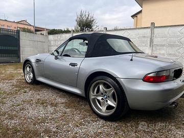 BMW Z3 M ROADSTER (321 CV) ARGENTO METALLIZZATO CON CAPOTE BLUE INTERNI BLU E NERI 4 GOMME ESTIVE 95% FRIZIONE NUOVA ISCRITTA ASI MIA DA 16 ANNI ULTIMI TAGLIANDI CON VERIFICA TOTALE BMW Z3 M ROADSTER (321 HP) METALLIC SILVER WITH BLUE SOFT TOP BLUE AND BLACK INTERIOR 4 SUMMER TIRES AT 95% NEW CLUTCH ASI REGISTERED OWNED BY ME FOR 16 YEARS A LAST SERVICES DONE WITH FULL CHECK-UP