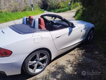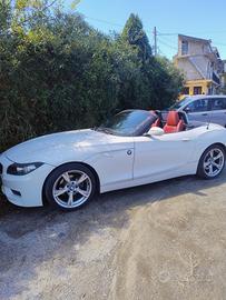 BMW Z4 colore esterno bianco, Anno 2013 , circa 150 Mila km , motorizzazione 2. L turbo 184 CV , doppie chiavicon apertura keyless, cambio manuale a 6 marce con tasti "eco e 2 modalità sport", interni in pelle rossa riscaldabili con regolazione fianchetti elettrica, sterzo multifunzione riscaldabile , fari e abbaglianti automatici e adattivi a led , sensore pioggia , pacchetto luci interne , specchietti elettrici , sensori di parcheggio fronte / retro , sistema stereo multimediale con navigatore grande e bluetooth per telefono, servizio SOS , Cruise control , cerchi in lega M da 18 , allestimento M Sport interno ed esterno