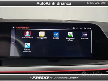 DEK:[10845959] CODICE INTERNO: GF739 5MOTIVI PER SCEGLIERE BMW PREMIUM SELECTION · 01 24 mesi Garanzia BMW Premium Selection · 02 Controllo del veicolo a 360° · 03 Esenzione da manutenzione per 6 mesi o 10.000 km* · 04 24 mesi di assistenza stradale* · 05 Certificazione del chilometraggio Verniciatura esterna: Black Sapphire metallic Rivestimento interni: Leather 'Vernasca' Magma Red decor stitching (BK) Optional veicolo: 01P4 Cerchi 19" M 0248 Riscaldamento al volante 02VB Monitor della pressione degli pneumatici 0302 Sistema di allarme 0322 Sistema di accesso al comfort 0387 Deflettore del vento 03M2 Freno M Sport, rosso lucido 0431 Specchietto retrovisore interno con funzione automatica anti-abbagliamento 0488 Supporto lombare 0494 Riscaldamento dei sedili per conducente e passeggero anteriore 04HA Luce ambientale 0534 Aria condizionata automatica 0552 Fari a LED adattivi 05AC Assistente abbaglianti 05DF Cruise Control attivo con funzione Stop&Go 05DM Assistente al parcheggio 0688 Sistema audio surround Harman Kardon 06AK Servizi ConnectedDrive 06C4 Connected Package Professional 06NW Telefonia con ricarica wireless 06U3 BMW Live Cockpit Professional 06WD Hotspot WiFi 08TF Sicurezza attiva dei pedoni In caso di permuta, indica: marca, modello, colore, anno di immatricolazione, chilometri, cambio, stato della vettura (meglio se con foto allegate). Con queste informazioni potremo risponderti più velocemente. AutoVanti declina ogni responsabilità per eventuali involontarie incongruenze rispetto alla descrizione presente