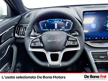 2 x chiavi Smart, 4 x alzacristalli one-click con anti-pizzicamento, Accensione e avviamento keyless, Airbag a tendina laterali, Airbag centrale anteriore, Airbag conducente, Airbag laterali anteriori, Airbag passeggero anteriore con interruttore per la disattivazione, Aletta parasole sedili anteriori con luce e specchietto di cortesia, Android Auto e Apple CarPlay, Assistente abbaglianti (HMA), Assistente al cambio di corsia (LCA), Assistente al mantenimento della corsia (LKA), Assistente alla deviazione dalla corsia (LDA), Assistente alla partenza in salita (HHC), Assistenza al mantenimento della corsia dapos;emergenza (ELKA), Assistenza alla frenata idraulica (HBA), Avviso di apertura portiera (DOW), Avviso di attraversamento anteriore (FCTA) e freno di attraversamento anteriore (FCTB), Avviso di attraversamento posteriore (RCTA) e freno di attraversamento posteriore (RCTB), Avviso di Collisione Frontale (FCW), Avviso di collisione posteriore (RCW), Avviso di collisione predittivo (PCW), Avviso di deviazione dalla corsia (LDW), Blocco meccanico di sicurezza per bambini, Bracciolo centrale anteriore con 2 portabicchieri, Bracciolo posteriore con 2 portabicchieri, Caricabatterie di bordo da 11 kW (OBC), Cavo di ricarica modalità 2: tipo F, Cerchi in lega bicolore da 19quot;, Chiamata dapos;emergenza, Cintura di sicurezza sedile centrale posteriore con limitatore di forza, Cinture di sicurezza anteriori pretensionate e con limitatore di forza, Cinture di sicurezza posteriori pretensionate, Comfort Stop (CST), Controllo intelligente del limite di velocità (ISLC), Controllo vocale intelligente - Ciao, BYD, Cruise control adattivo (ACC) e cruise control intelligente (ICC), Distribuzione elettronica della frenata (EBD), Fari a led con accensione / spegnimento automatico, Fari Automatici, Filtro PM2.5, Follow me home (funzione di accensione