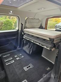 Caddy Maxi California, 114 CV 84 kW (2021), Carrozzeria 5 porte, Cilindrata 1498 cm3, benzina, classe emissioni: Euro 6d. Tagliandi certificati, revisionato ad aprire 2025, Mini cucina (inclusa omologazione come autoveicolo speciale "Camper"). WEBASTO Riscaldamento autonomo utilizzabile a motore spento programmabile e utilizzabile anche con radiocomando. Letto a soffietto. Tavolo e sedie VW. Tetto panoramico. Sedili posteriori estraibili. Riscaldamento dei sedili nella cabina di guida, a sinistra e destra, con regolazione separata. Specchietti retrovisivi esterni, regolabili elettricamente, riscaldabili separatamente e ripiegabili. Veicolo non fumatori. 2 porte scorrevoli. Sensori parcheggio anteriori, posteriori e laterali. Telecamera posteriore. Parabrezza vetro termico