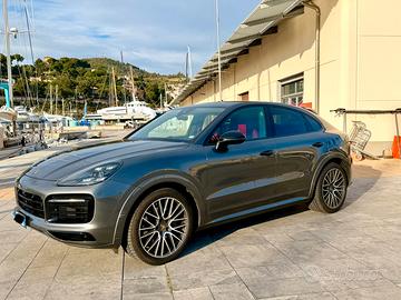 Cayenne Coupé 06/2021, Grigio Quarzite metallizzato, pelle bicolore nero/rosso Bordeaux. Garanzia ufficiale Porsche Car Approved attiva fino a 06/2027 (valida in tutta Europa, assistenza stradale e carro attrezzi inclusi). Copre guasti meccanici/elettronici; esclusa manutenzione ordinaria.
