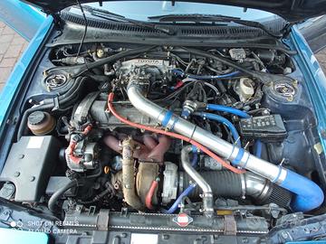 Per la meccanica monta centralina motore haltech programmabile, turbo garrett gtx30/76r gen2, wastegate esterna tial, collettore di scarico dedicato, aspirazione diretta 100mm con rimozione debimetro, intercooler frontale, pompa benza aem 340lt/h, rail ricavato dal pieno ad alto flusso, iniettori deatschwerk (bosch) 800cc, regolatore pressione benza esterno, scarico diretto artigianale 70mm, supporti motore in poliuretano, asetto regolabile con piastre camber anteriore bc racing, dischi e pastiglie freno ebc, tubi freno in treccia e pompa freno nuova. Guarnizione testa e frizione rinforzata.