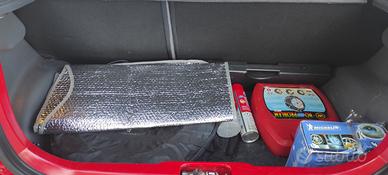 -Sistema di gonfiaggio di emergenza, catene da neve, triangolo di emergenza.