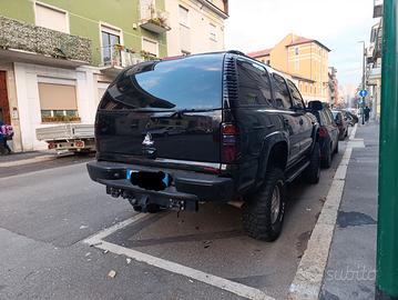 Chevrolet Tahoe anno 2002 , mercato europeo non importato, V8 cilindrata 5.3 , km 250000 , impianto gpl BRC da 95 litri 8 posti , già scritto a libretto ASI, non paga bollo in Lombardia e assicurazione ridotta a 200 euro, assetto Top di gamma da 13 pollici (33cm ) , gomme omologate 315 /75 R16 , omologato anche paraurti gravoso con vericello ma non presenti, gancio traino ,luci di ingombro arancioni a led sul tetto, portapacchi scorrevole con barre, sedili anteriori riscaldati in pelle e rifatti con stemma Chevrolet, tettuccio elettrico , A/C, impianto stereo bello potente con stereo vivavoce , antifurto , 4x4 automatico e inseribile con riduttore, cambio automatico rimesso a nuovo Settembre 2025 dimostrabile con fattura euro (4500) , ponte posteriore e differenziale sostituito con fattura euro (1200).