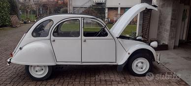 CITROEN 2CV 6 Special del 03/1983 - tipo AZ KA B / 602 cc Vettura d'epoca, originale. Km 75.000. Senza ruggine. Carrozzeria, interni, Impianto elettrico, meccanica, tutto regolarmente funzionante e d'uso quotidiano. Sempre al coperto. Capotte nuova. Parabole fari, cuffie semiassi, revisione carburatore, liquidi e filtri, punterie etc. Monta freni a disco all'anteriore (nuove pastiglie). Colore bianco. A corredo: doppia chiave, libretto d'uso e manutenzione, crik, ruota di scorta + 4 cerchi , bobina a liquido, fari supplementari. Esente bollo e assicurazione ridotta . Revisionata. Prov. di Torino. Invio foto a chi seriamente interessato. Prezzo trattabile. Formula Vista/piaciuta Eventuale permuta con Defender 89/96-Vw Pescaccia o Giubileo o Buggy - Renault 4 Sinpar o Frog