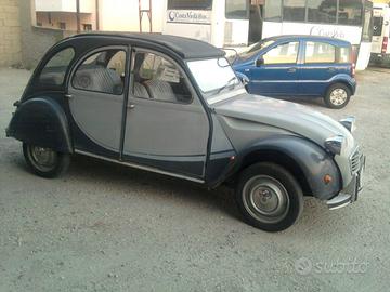 Vendo una splendida 2CV Charleston , bigrigia , del 1988 ( praticamente una delle ultime costruite) perfettamente ristrutturata ;praticamente nuova come uscita dalla fabbrica.La vettura è stata sottoposta ad un intervento completo di carrozzeria e meccanica, con la sostituzione dei componenti usurati con altri originali Citroen. E' stato smontato il telaio per la verifica di idoneità meccanica sia del telaio che dei componenti ( sospensioni,cremagliera sterzo, bracci ,ammortizzatori ecc.). Sono stati installati i rinforzi prescritti da Citroen. Riverniciato il telaio con vernice epossidica. Verniciatura della scocca con la sostituzione di alcuni componenti. Sostituiti tutti gli interni con originali Citroen.Sostituita la cappotta.Nella parte meccanica revisionato tutto l'impianto frenante ,con la sostituzione dei componenti avariati.Sostituita la frizione. Revisionato cambio e motore.Revisionato il carburatore.Montati 4 copertoni nuovi. La vettura è dotata di autoradio d'epoca, di fari fendinebbia ausiliari, di lampeggio a pedale, di spruzzature acqua lavavetro elettrico. E' provvista di CRS . Si posseggono le fatture di acquisto dei componenti sostituiti.