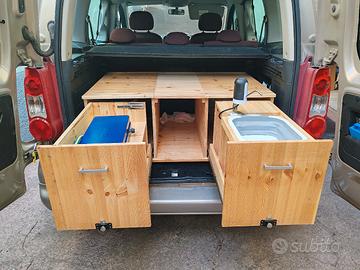 Il mezzo immatricolato come autovettura si può rendere camperizzato per 2/3 posti letto. Il modulo per la camperizzazione è comodamente rimovibile in pochi minuti.