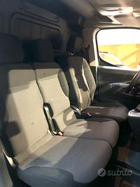 Climatizzatore manuale, 1 vano chiuso nella parte alta del lato passeggero, Vano portaoggetti dietro il quadro strumenti, vano chiuso e refrigerato nella parte alta del lato passeggero, Vano portaoggetti nel tetto Capucine; Illuminazione del bagagliaio in terza fila, Regolazione lunghezza, altezza e inclinazione. schienale, poggiatesta regolabile in altezza, Sedile conducente "comfort": Regolazione in altezza. Appoggiatesta regolabile in altezza. Regolazione lombare manuale sul sedile del conducente. Vano portaoggetti sotto il sedile del conducente, Sedile passegero singolo, Predisposizione barre al tetto, Kit anti-foratura "Light", Rivestimento in moquette nella prima fila, Set di chiavi: 1 chiave semplice + plip 3 pulsanti, 1 Porta laterale scorrevole lamierata (Destra), Paratia fissa lamierata; con appendiabiti, Porte a battente a 180°: 1/3 (destra) 2/3 (sinistra) con serratura, Anelli fermacarico (6 sul pavimento), Rivestimento fondo TPO prima fila, Panchetta 2 posti + tavolino centrale per scrivere: Schienale centrale ribaltabile (funzione bracciolo), vano sotto il sedile centrale; sedile laterale retrattile per un lungo carico, Comandi al volante (sul piantone), Computer di bordo, Radio Dab con Bluetooth, USB, Cerchi in lamiera Demi Style (15''), Protezioni laterali nere, Calotte dei retrovisori nere, Tergicristalli manuali e accensione automatica dei fari; Sistema Magic Wash Premium, Fendinebbia, Interni in Tessuto Mica Grey, ABS, Airbag frontale conducente, ASR, ESC,