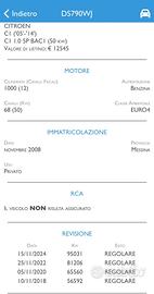Salve vendo stupenda Citroen C1 1.0 68 Cv 5 Porte adatta alla guida per neopatentati e dai consumi bassissimi Anno 2008 con 100.000 Km..Unico Proprietario..Revisionata..Gommata e Tagliandata..Auto in ottime condizioni generali e non necessita di alcun intervento..Motore , Meccanica è Carrozzeria in perfette condizioni..Interni senza alcun segno di usura..Modello Full Optional è dotata di alza cristalli elettrici..chiusura centralizzata e allarme sonoro..clima..servo sterzo..stereo cd originale di serie con collegamento aux ecc..