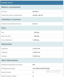 UNICO PROPRIETARIO.Auto immatricolata a maggio 2011 , in ottime condizioni generali.1.0 benzina di cilindrata ( 50 KW / 68 cavalli ) con i consumi ridottissimi , si percorrono mediamente 22 chilometri con un litro.sono stati eseguiti i seguenti lavori : SOSTITUZIONE FRIZIONE ,. CAMBIO OLIO E FILTRO ., PASTICCHE ANTERIORI .( LAVORO EFFETTUATO CON FATTURA).DOTATA DI :Servosterzo., aria condizionata ., chiusura centralizzata con telecomando ., ABS., Radio CD ., vetri anteriori elettrici ,. eccc.....- DOPPIA CHIAVE.- REVISIONE VALIDA FINO AD APRILE 2026.- DIRETTIVA AMBIENTALE : EURO 5.- VISURA CARFAX CHE DIMOSTRA L'ASSENZA DI INCIDENTI E CERTIFICA L'ORIGINALITÀ DEL CHILOMETRAGGIO.(VEDI IMMAGINI).- GOMME IN OTTIMO STATO.- ADATTA ANCHE PER NEOPATENTATI.- QUALSIASI PROVA COL VOSTRO MECCANICO DI FIDUCIA. ** PREZZO DEFINITIVO E NON È ASSOLUTAMENTE TRATTABILE **