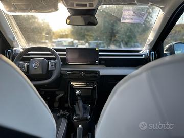 Optional: - Sedili posteriori monoblocco abbattibili, non indipendenti - Citroen head-up display - Chiusura centralizzata con pulsante di sicurezza e visualizzazione permanente delle porte chiuse - Calotte degli specchietti retrovisori esterni in tinta in massa - Rivestimento passaruota matt black - Rilevamento di gonfiaggio insufficiente - Kit di riparazione temporanea dei pneumatici - Pack safety - Maniglie esterne delle porte nere lucide - Spia cintura di sicurezza conducente e passeggeri - Cerchi in lega diamantati atacamite da 17" - Barre al tetto in colore nero Lucido - Fari posteriori a LED 3D - My Citroen drive con navigazione su schermo centrale da 10" - Specchietto retrovisore laterale regolabile elettricamente con sbrinatore - Alzacristalli elettrici anteriori con abbassamento automatico per il conducente e abbassamento automatico per il passeggero - 1 presa USB-C sul cruscotto + 2 prese USB-C nella seconda fila (ricarica rapida 3A) - Sedile posteriore abbattibile 2/3 - 1/3 - ABS - Airbag laterali - Volante regolabile in altezza e profondità - Vetri posteriori oscurati - Specchietti esterni elettrici - Airbag anteriori - Telecamera Di Retromarcia - ESP - 2 altoparlanti - Climatizzatore automatico - 6 Airbag - Sedile di guida regolabile in altezza - Hill Assist - Servosterzo - Spoiler posteriore - Airbag a tendina - Sensori Di Parcheggio Posteriori - Alzacristalli posteriori elettrici - Specchietto retrovisore interno elettrocromico - REF - AFU - Accensione automatica dei fari anabbaglianti - Ricarica wireless per smartphone - Proiettori anteriori a LED - Volante in eco-pelle - Sospensioni Citroen advanced comfort - Allestimento metropolitan grey sedili in tessuto / TEP - Clip bianca