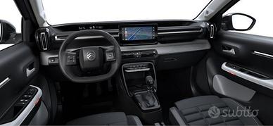 1 presa USB-C sul cruscotto+ 2 prese USB-C nella seconda fila (ricarica rapida 3A) - 2 altoparlanti - ABS + REF + AFU + ESP - Accensione automatica dei fari anabbaglianti - Airbag a tendina - Airbag anteriori - Airbag laterali - Allestimento Metropolitan Grey sedili in tessuto / TEP - Alzacristalli elettrici anteriori con abbassamento automatico - Alzacristalli posteriori elettrici - Barre al tetto in colore nero lucido - Calotte degli specchietti retrovisori esterni in tinta in massa - Cambio manuale a 6 marce - Cerchi in lega diamantati Atacamite da 17" - Chiusura centralizzata con pulsante di sicurezza e visualizzazione permanente delle porte chiuse - Citroën Connect Box (comprende i servizi Connect ONE) - Climatizzatore automatico - Clip colorate (Bianco/Rosso/Giallo Limone (a seconda delle tonalità) - Clip colorate paraurti anteriore (Bianco/Rosso/Giallo Limone (a seconda delle tonalità) - Commutazione automatica degli abbaglianti - Fari posteriori a Led 3D - Head-up Display - Hill Assist - Kit di riparazione temporanea dei pneumatici - Maniglie esterne delle porte nere lucide - Maniglie esterne delle porte nero opaco - Maniglie interne delle porte nero opaco - My Citroen Drive con navigazione su schermo centrale da 10'' - My Citroen Drive con navigazione su schermo centrale da 10,25'' - My Citroen Play con smartphone station - Pack safety - Piastre protettive Cit